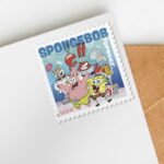 The 4 stamps in the collection highlight beloved characters from the show: 2 bright yellow stamps feature closeups ofSpongeBob’s face wearing goofy smiles. A third stamp showcases a host of Bikini Bottom characters including Sandy CheeksPatrick Star, Plankton, Mr. Krabs, $pongeBob, Gary, and Squidward Tentacles. The final stamp shows SpongeBob and Patrickfrolicking on the sandy ocean floor.